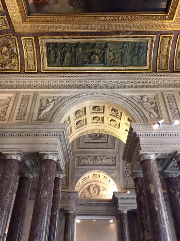 Inside, it’s mind-boggling. There are rooms with architecture that swoops in and out, while sculptures look down and you, and rows and rows of paintings are directly above you: